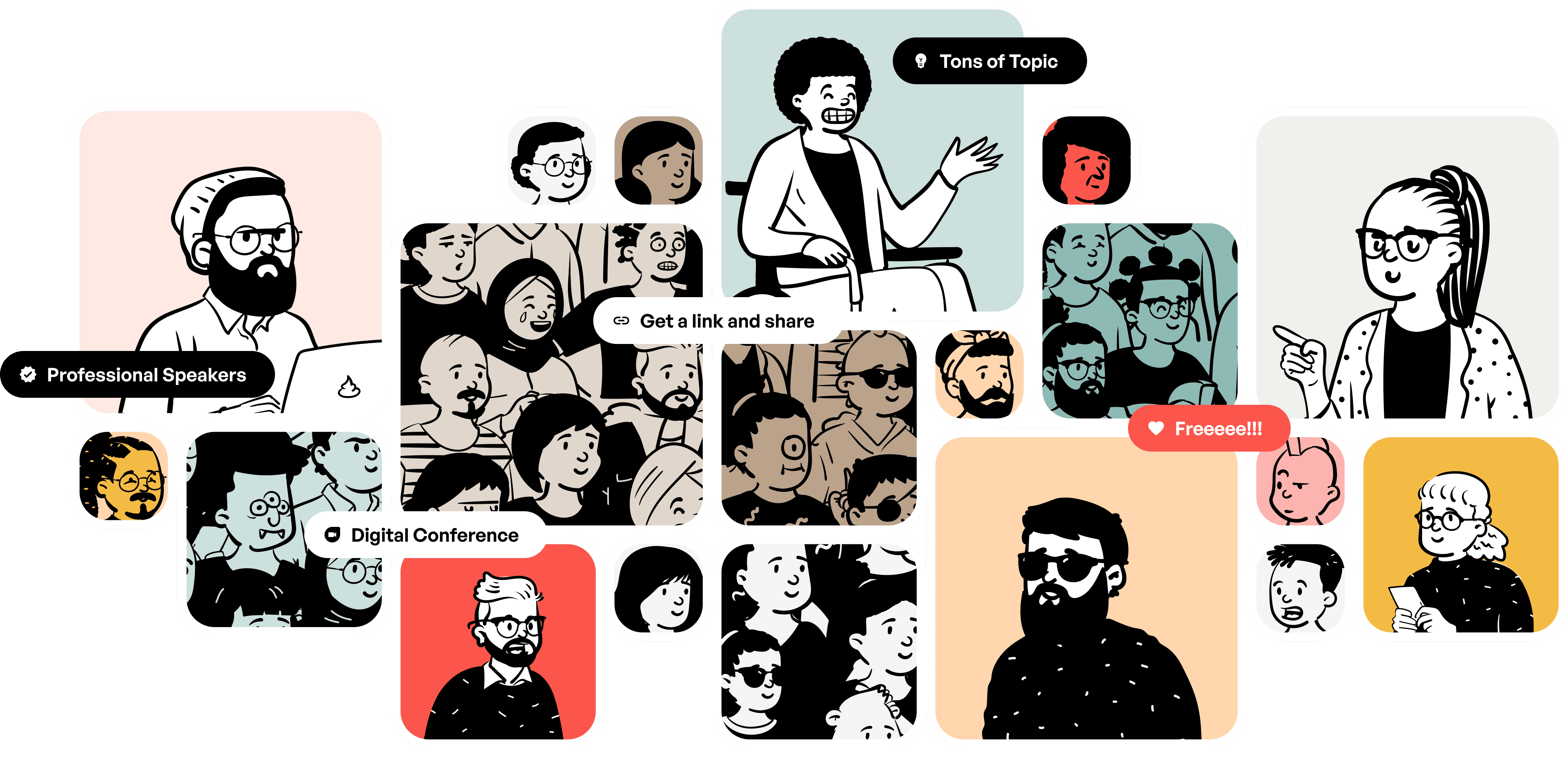 Virtual meetings, and conferences, anyone can share, join or host (virtual events).